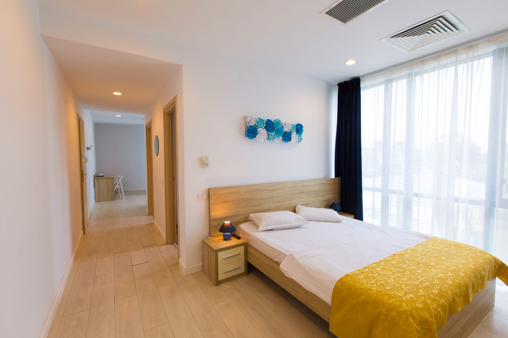 În Apartamentul Standard de la Blumarine, confortul întâlnește eleganța. Spațiul generos de 45 mp include un living cu canapea extensibilă (160×200) și un dormitor cu pat matrimonial (160×200). Fără ușă între cele două camere, vă oferă un design deschis, completat de televizoare LCD și sistem de climatizare pentru un sejur plăcut.