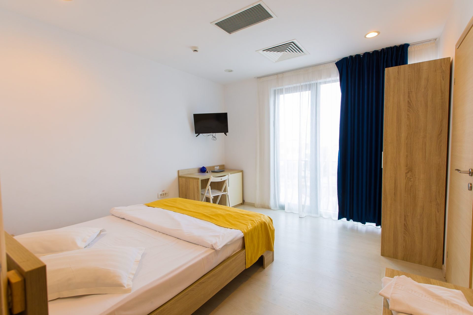Descoperiți confortul și intimitatea în camerele duble standard de la Blumarine. Fiecare cameră este echipată cu un pat matrimonial (160×200) pentru odihnă deplină. Situate pe etajul 1, aceste camere oferă și un balcon mic, tip francez, unde vă puteți bucura de aerul proaspăt al mării. Cu o suprafață de 15 mp, aceste camere sunt o alegere perfectă pentru o ședere relaxantă pe litoralul Mării Negre.